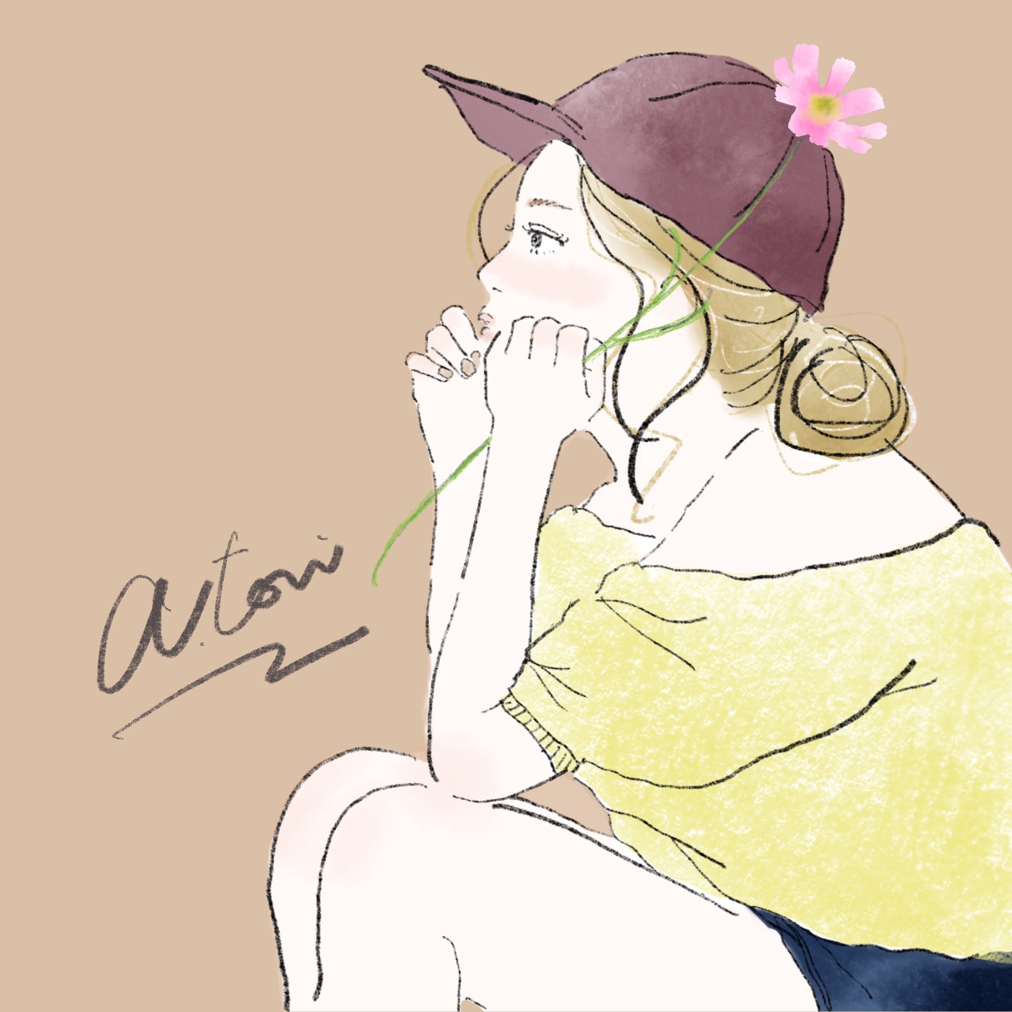 今どきの優しいタッチの線画にニュアンスカラーを使った